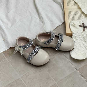 XUIU「CleanFit」25New ブラック シルバー ガールズ バーン レザー シューズ 春秋 ベルクロ [温州靴]