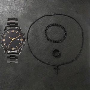跨境爆款男士手表饰品4件套简约时尚手表男士全自动玻璃石英表