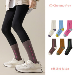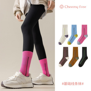 CHEEMY FREE ソックス レディース 春と秋 ボンレス 通気性 トレンディなパーソナライズされたライン インターネットセレブ インズ ミッドカーフソックス レディース 春と夏