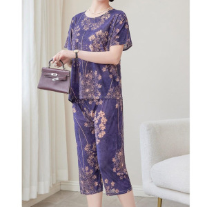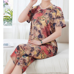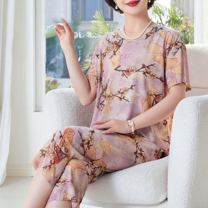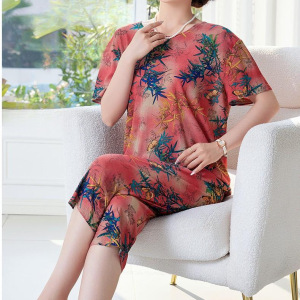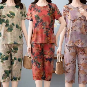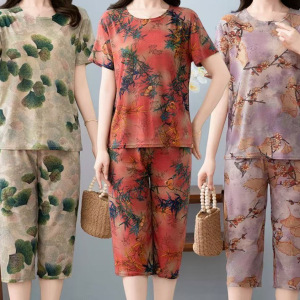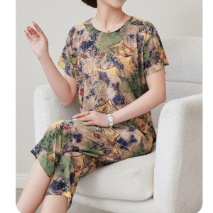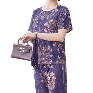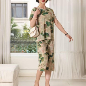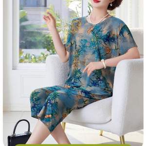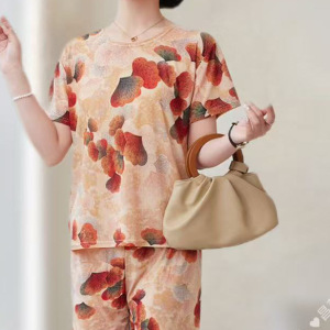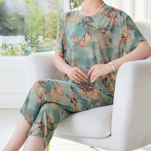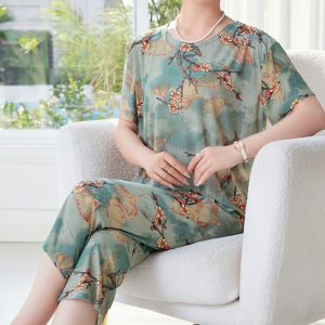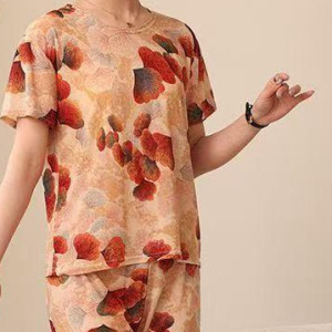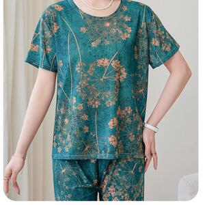 2025 新しい夏クールアイスシルクママスーツ気質多用途グリーンイチョウの葉竹の葉ブルー