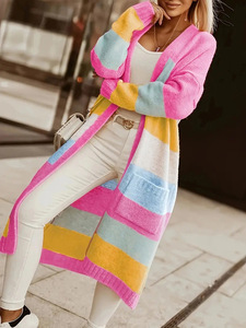 Amazonの人気の2025秋冬新作レインボーカラールーズロングニットカーディガンヨーロッパとアメリカの女性のセータージャケット