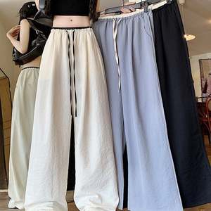 设计感撞色薄款阔腿裤女新款肌理感直筒休闲裤潮外贸货源批发