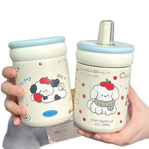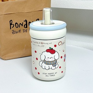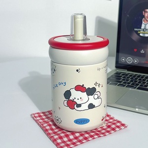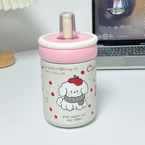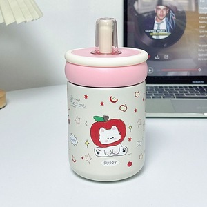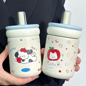 女の子用ウォーターカップ、見栄えの良い316ステンレス鋼の大容量魔法瓶カップ、ポータブルストロー、キャンパス学生のかわいいカップ