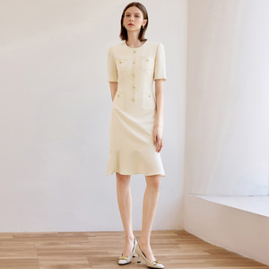 ライトグリーンの小さな香りのラウンドネックスーツドレス女性の夏の半袖フレンチフィッシュテールスカート気質通勤作業服