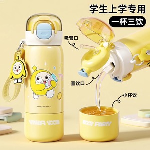 蛋仔派对儿童保温杯316不锈钢吸管杯小学生上学便携带提绳水杯子