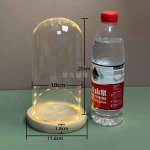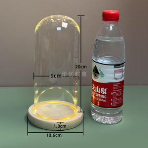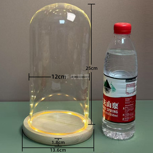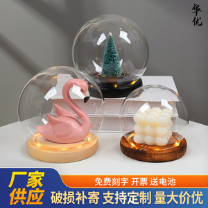 槽灯发光玻璃罩底座带灯永生花干花展示盒防尘罩手办手模玻璃罩子