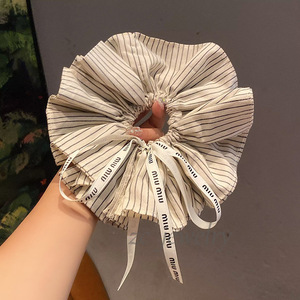 时尚精致字母条纹蝴蝶结飘带大肠发圈女高级感韩系大号扎头发头绳