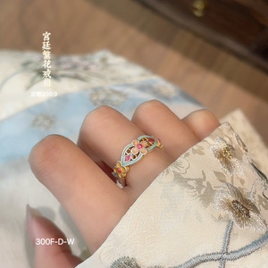 福氏足银999.9新中式宫廷风国风复古描金珐琅镂空开口纯银手镯