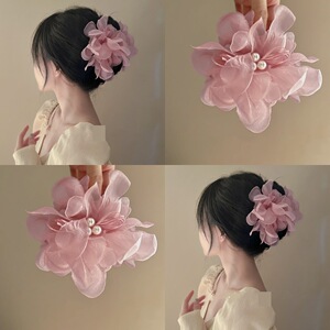 2024 新しいフレンチメッシュフラワーシャーククリップ女性のスーパーフェアリーヘアクリップ後頭部ヘアピンハイエンド