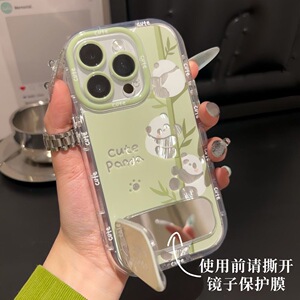 熊猫镜子支架适用苹果16/15pro手机壳华为vivo小米15oppo泡芙羽纱