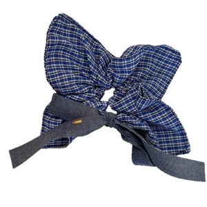韓国風リボンデニムブルーチェック柄スクエアスカーフヘアバンドフェミニンスクエアヘアアクセサリーヘッドバンドゴムバンドヘッドバンド