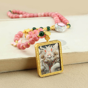 藏饰金色唐卡狐仙吊坠项链挂链新中式国风长款毛衣链女民族风配饰