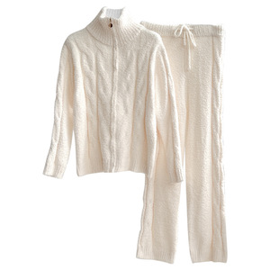 扭绳纯色半高领可外穿睡衣女秋冬天软绵绵舒适加绒加厚保暖家居服