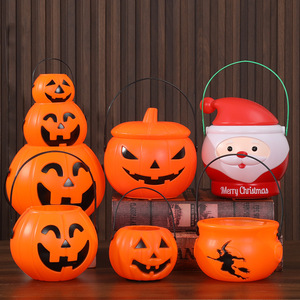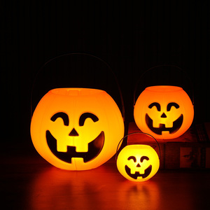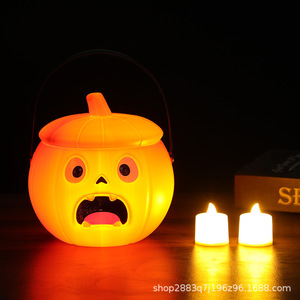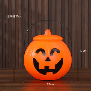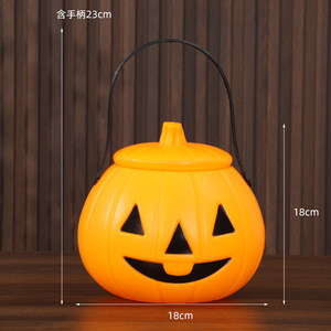 跨境万圣节南瓜灯儿童手提南瓜桶装饰糖果罐发光灯笼道具厂家批发