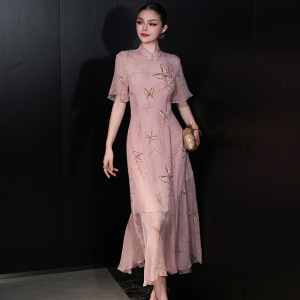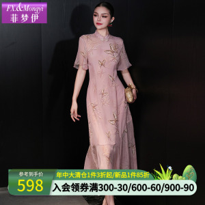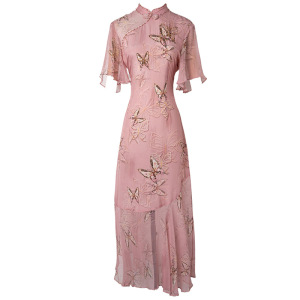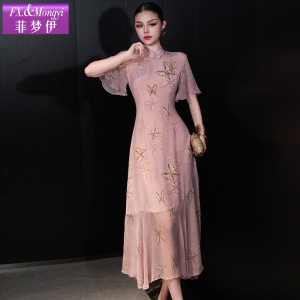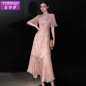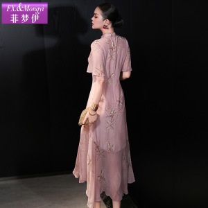Feimengyi 100 マルベリーシルクプリントドレス女性の夏のヘビーウェイトハイエンドシルクワイドレディース改良されたチャイナドレス