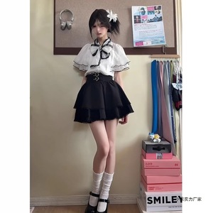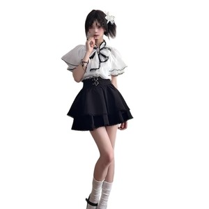 2025年夏季rojita清楚系日系甜美蝴蝶结气质上衣衬衫+短裙两件女