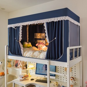 A类学生宿舍床帘一体蚊帐纯色花边物理强遮光环保遮光上下铺床幔