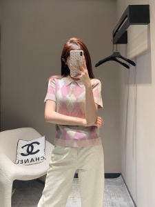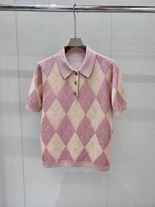 南油高货25夏季法式菱格提花甜美气质修身短袖针织衫学院翻领上衣