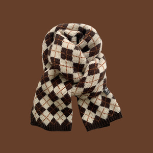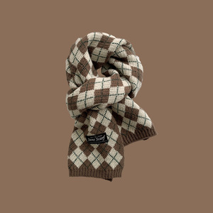 秋冬女士围巾韩版时尚甜美保暖中长款复古菱形格高级感针织款围脖