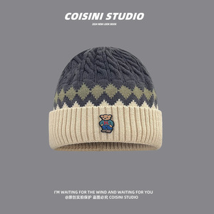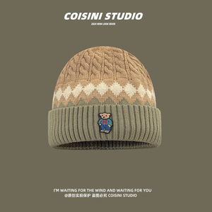 女针织帽冬帽帽子毛线帽小熊包加绒手套标防寒潮韩版儿童包头套头