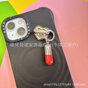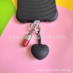 Case新品黑色嘭嘭爱心适用iPhone全系列多功能组合挂饰手机壳挂件