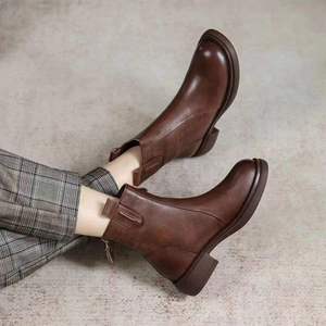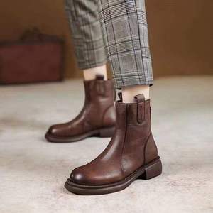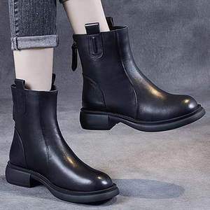 真软皮短靴女2025秋冬新款英伦风低跟小皮靴切尔西复古后拉链靴子