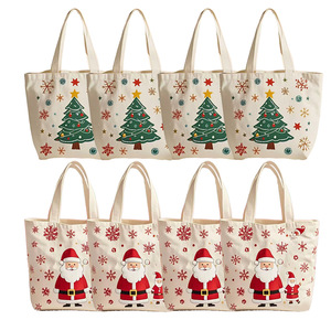 跨境热销爆款圣诞树节日派对帆布手提袋卡通圣诞老人糖果伴手礼包