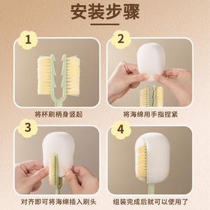 三合一可拆卸替换长柄刷洗奶瓶刷子洗杯刷厨房洗杯子海绵清洁刷子