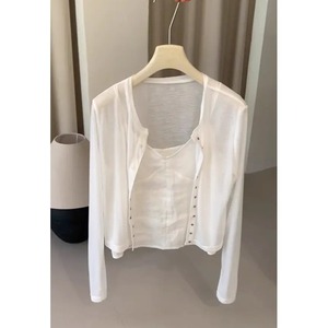 气质一整套ootd穿搭慵懒风薄款防晒开衫内搭法式V领吊带上衣套装
