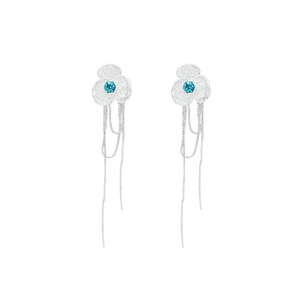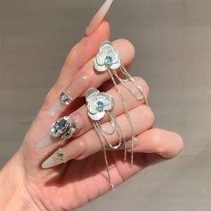 スーパーフェアリースイートブルージルコン椿タッセルイヤリング女性用、ハイエンド、軽い高級感、絶妙なイヤリング、イヤリング