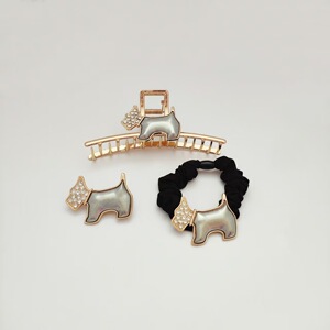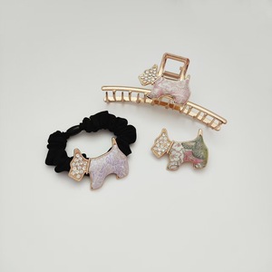 嘉樾新款宋锦发夹底胚点钻小狗发圈大肠圈合金鲨鱼夹凹槽贴皮饰品