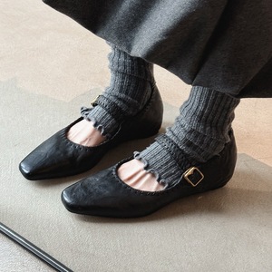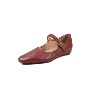 フレンチレトロ第一層シープスキンメリージェーン2025秋インナー高さ低スクエアトゥ本革ワンラインバックルシューズ女性用