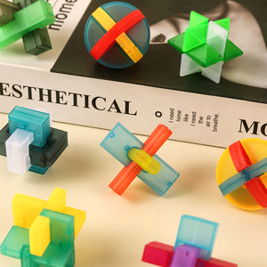 子供の知的解消リングほぞ穴ビルディングブロック透明ガラスルーバンロック孔明ロックロック解除教育玩具組み立て卸売