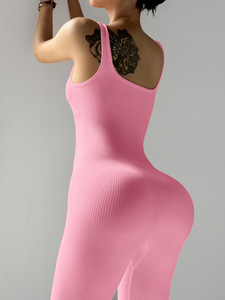 欧美无缝连体瑜伽服螺纹纯色一体式紧身美背高弹连体运动健身服女