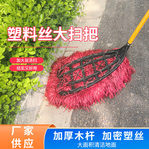 加厚塑料丝大扫把加宽环卫笤帚马路工厂庭院户外大号木杆扫把批发