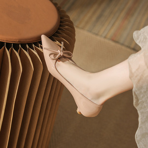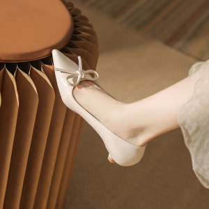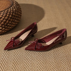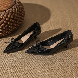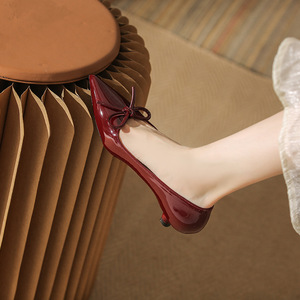2011新款仙女风浅口小跟百搭单鞋女法式淑女尖头漆皮蝴蝶结单鞋女