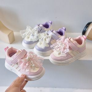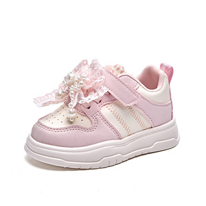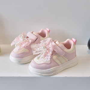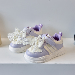 子供用ベルクロロートップ女の子用リボンスニーカー2025秋の新作カジュアルシューズ小中型子供用白靴