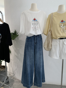 Omalai 韓国スタイル多用途ハイウエストレトロビッグフレアスタイルドレープジーンズ女性のための秋の新しいトレンド 4116