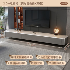 【免安装】2.0m三抽电视柜(亮光雪山白+灰柜软包)