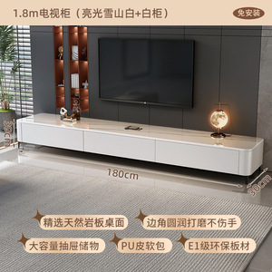 【免安装】1.8m三抽电视柜(亮光雪山白+白柜软包)
