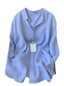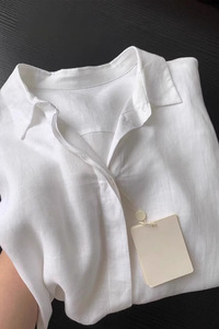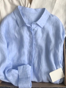 2025夏季休闲时尚法式翻领薄款高级感衣女夏季宽松慵懒风亚麻衬衫