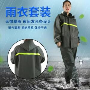 新しい防雨レインコートとレインパンツセット、全身厚みのある男性と女性の大人の屋外サイクリング反射スプリットレインコートとパンツ