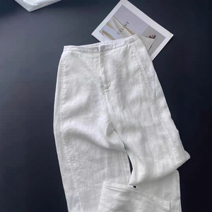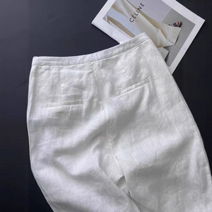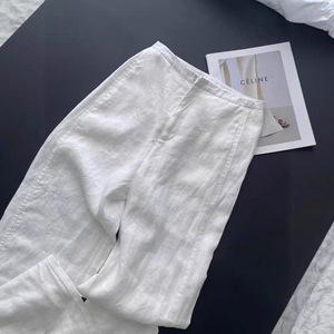 老钱风穿搭~白色高腰气质简约垂感通勤棉麻直筒阔腿裤女2025夏季
