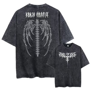 速卖通亚马逊原宿动漫印花上衣水洗做旧复古纯棉T恤水洗黑卡通
