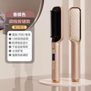 新款负离子直发梳不伤发直发器直卷两用卷发梳家用懒人便携卷发棒