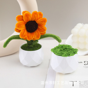 塑料小花盆毛线钩织加厚扭扭棒盆栽迷你手工小花瓶车载摆件工厂批