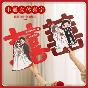 立体喜字结婚卡通结婚喜字贴大门房门结婚房间装饰卧室门贴纸全套