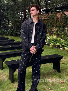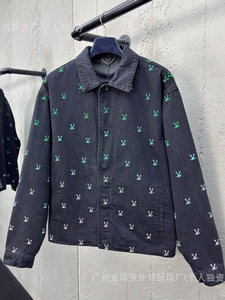驴家25新款菲董系列满印刺绣LOGO渐变蓝绿彩虹牛仔套装外套长裤L