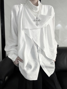 トレンディなレトロなハイエンドシャツ、不規則なスプライシングデザイン、ニッチシャツ、シンプルな新しいスタイル、新しい中国風のトップス