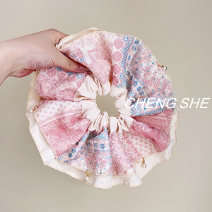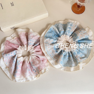 温柔法式刺绣花朵肥肠圈优雅气质盘发皮筋大号头绳发圈高级感发绳